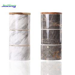 Marmoreio 3pcs Empilhável Recipiente de Cerâmica com Tampa De Madeira De Acácia