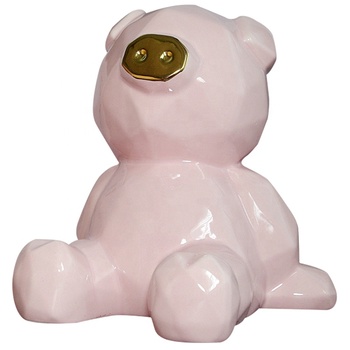 Porquete rosa em forma de moeda, banco de moedas de cerâmica com nariz dourado